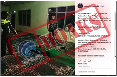 Baca SelengkapnyaTidak Benar Informasi Pembunuhan Di Masjid Sebagai Indikasi Bangkitnya PKI Beredar kabar di media sosial Facebook dan pesan berantai di Whatsapp (WA) yang menyajikan informasi mengenai pembunuhan...