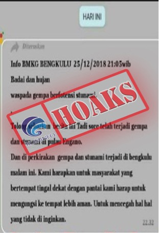 Baca SelengkapnyaPenjelasan : Sebuah informasi yang diklaim sebagai informasi resmi dari BMKG menyatakan bahwa akan ada Tsunami yang diprediksi terjadi di Bengkulu pada 26 Desember 2018. Dalam info tersebut...