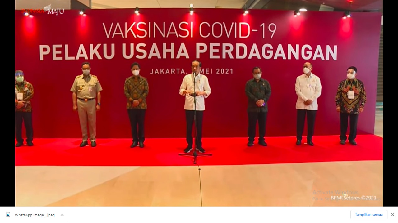 "Pagi hari ini yang saya lakukan melakukan peninjauan vaksinasi di Grand Indonesia," ujar Presiden Joko Widodo melalui siaran langsung Akun YouTube Sekretariat Presiden.