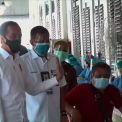 Jakarta, Iprahumas - Presiden Joko Widodo meninjau pelaksanaan vaksinasi bagi para insan pers atau wartawan di Hall A Lapangan Basket Gelora Bung Karno (GBK), Jakarta, pada Kamis (25/2/2021). Berdasarkan pantuan Iprahumas, Presiden Joko Widodo tiba di lokasi pada sekitar pukul 09.17 WIB. Beliau didampingi oleh Menteri Komunikasi dan Informatika (Kominfo) Johnny G Plate, Menteri Kesehatan Budi Gunadi Sadikin, dan Ketua Dewan Pers Muhammad Nuh. Presiden langsung meninjau para vaksinator yang...
