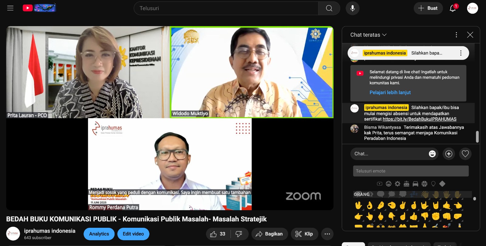 Baca SelengkapnyaJakarta, 22 Maret 2025 - Ikatan Pranata Humas (Iprahumas) Indonesia menggelar webinar Pranata Humas Bersertifikasi: Kredibel, Profesional, dan Berdaya Saing!. Kegiatan menghadirkan narasumber pakar...