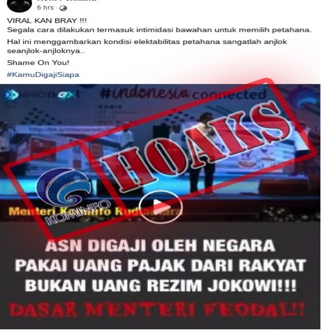 Penjelasan : Media sosial dihebohkan dengan beredarnya video yang memperlihatkan Menteri Komunikasi dan Informasi (Menkominfo) Rudiantara yang menanyakan siapa yang menggaji PNS di kementeriannya....