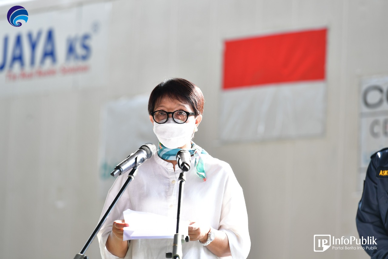 "Kita apresiasi upaya tersebut dari sejak awal pandemi, secara konsisten Indonesia terus menyuarakan akses vaksin yang setara bagi semua. Indonesia juga mendukung penghapusan paten Vaksin COVID-19 guna mendorong kapasitas produksi dunia terhadap vaksin. Ini adalah salah satu bentuk upaya kolaborasi dunia untuk menyamaratakan jalan, bagi akses vaksin setara untuk semua," ujar Menlu. (Foto: InfoPublik)